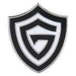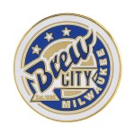 This high quality lapel pin is sure to make a great impression. Each piece is struck into high grade brass, filled with jewelry quality hard enamel and hand polished. The finish is glassy and the colors are vibrant and bright. Each pin is plated in 24kt gold, silver or copper. Custom shape, up to 4 enamel colors and butterfly clutch or rubber clutch backing. 1-7/8″ size. 1 7/8″ W