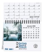 This tent calendar features an 80 Lb. gloss cover with your 3″x 2 15/16″ photo printed on it. It includes 12 calendar sheets made with 80 Lb. gloss text paper that include front and back month-at-a-glance with room to write and 12 custom full color photos. Calendar is printed in back only and the back of the last calendar sheet has a year-at-a-glance calendar for the current and next year. The pre-scored back folds into an easel and is made from white cover stock that can be printed on 2 sides. Easel back has “Emergency Phone Numbers” and “Future Planning” areas. Bound with black Wire-O. Measures 5 13/16″x 6 ¼” flat for mailing. 5 13/16″ L x 4 1/2″ W