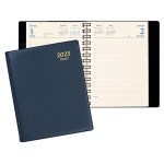 Daily Desk Planner, Ivory paper. Timed on 1/2 hour. One day per page. U.S and Canadian holidays. 4 month reference per spread. Current/forward planner. Monthly expense records. Phone/address section. Area codes/time zones. Toll free numbers. 5 1/2″ W x 8 1/2″ W