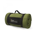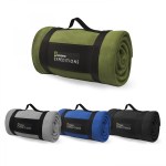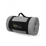 Whether youre city or country bound, keep warm and comfy while you travel with this Dakota 100% polyester blanket made of 245g of cozy polyester fleece, blanket size 47″ x 59″ – unfolded. Available in 4 earth-tone colors with matching blanket stitch all around the edge. Grab it by the woven strap handle of the elastic blanket holder and youre good to go! The strap even has an integrated elastic space to keep a standard 600mL reusable bottle not included. Convenient, warm, and easy to carry – the Dakota is a favorite travel blanket. 11.75″ L x 6.5″ W x 6.5″ H
