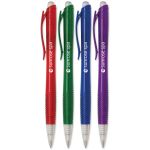 Up to 4 lines of copy FREE on the – Ergo Scholar Click Pen. This pen is packaged individually in a cello wrapper for safe easy sharing. Translucent barrel. Ergonomic design and textured grip & plunger. Retractable action. Black or blue ink. Complies with Prop 65.