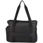 Stay stylish and organized with the Daybreak Recycled Multipurpose Tote. Crafted from rPET (recycled polyethylene terephthalate) material, the same sleek fabric as the rest of our Daybreak collection, this zippered tote is designed for work, travel, or weekend getaways. It includes a unique pocket to securely hold your handled drinkware, a padded compartment that fits a 17″ laptop, and a trolley strap for easy travel. With multiple pockets for small items, secure zip closures, and a side water bottle pocket with a hook-and-loop closure, this tote combines style and functionality. Made from rPET, each purchase also supports environmental nonprofits through our partnership with 1% For The Planet. 5.50″ D x 15.00″ W x 12.50″ H