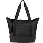 The Daybreak Recycled Travel Tote is a versatile and spacious bag designed for a variety of uses. Featuring a drop-bottom compartment for separating specific items, a large zippered main compartment, and an interior laptop pocket that fits up to a 15” laptop, this tote keeps your belongings organized and secure. With adjustable and removable straps for easy carrying, a front zippered pocket for additional storage, and a D-ring for clipping extra items, this tote is ideal for travel and everyday use. Made with recycled materials, this bag also supports environmental nonprofits through a partnership with 1% For The Planet. 7.50″ D x 20.50″ W x 14.75″ H