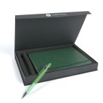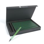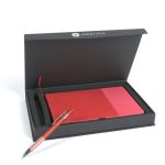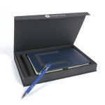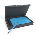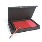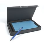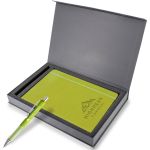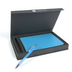 The Debossed Bella Luna™ Brite Journal and Pen Set Come Together to Make a Cheery Gift Set! This hard cover journal features a soft faux leather cover in bright fun colors. Each journal has 80 sheets (160 ruled pages), a ribbon page marker and a pocket inside the back cover to store documents. The Bella Luna™ Brite Gel-Glide Pen features our Softex™ finish and silicone comfort grip for easy handling. Your custom message is printed on both the journal and the pen for a lasting impression. Complies with Prop 65. 5.75″ W x 8.25″ H