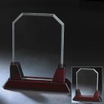 Acknowledging tradition with a contemporary angle, this glass rectangle plaque sports polished bevels, clipped beveled corners, and a glowing rosewood base. 8.0″ W x 9.0″ H x 3.0″ D