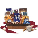 A variety of delightful treats fill this fetching cork-like basket with faux-leather trim. From sweet to savory, there is a selection here to tantalize every taste bud. Your logo or imprint is foil-stamped in gold on the ribbon in your choice of color tying it all together. Long after the treats have been enjoyed, the basket will be used and reused as a lasting reminder of your appreciation. Complies with CPSIA, FDA, Prop 65. 14.75″ L x 11″ W x 3.5″ H