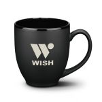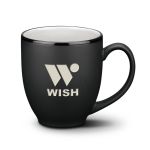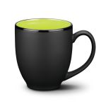 The Dereham ceramic mug gives a contemporary satin black glaze treatment to the classic coffee cup shape. The contrasting gloss rim and bright colors give a little lift to your morning joe.