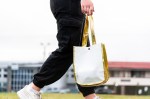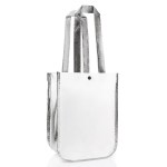 Combination of 110 GSM non-woven polypropylene material with gloss lamination. Plastic snap closure and contrasting color on gusset and 19.5″ handle. Complies with ASTM, CPSIA. 8.5″ W