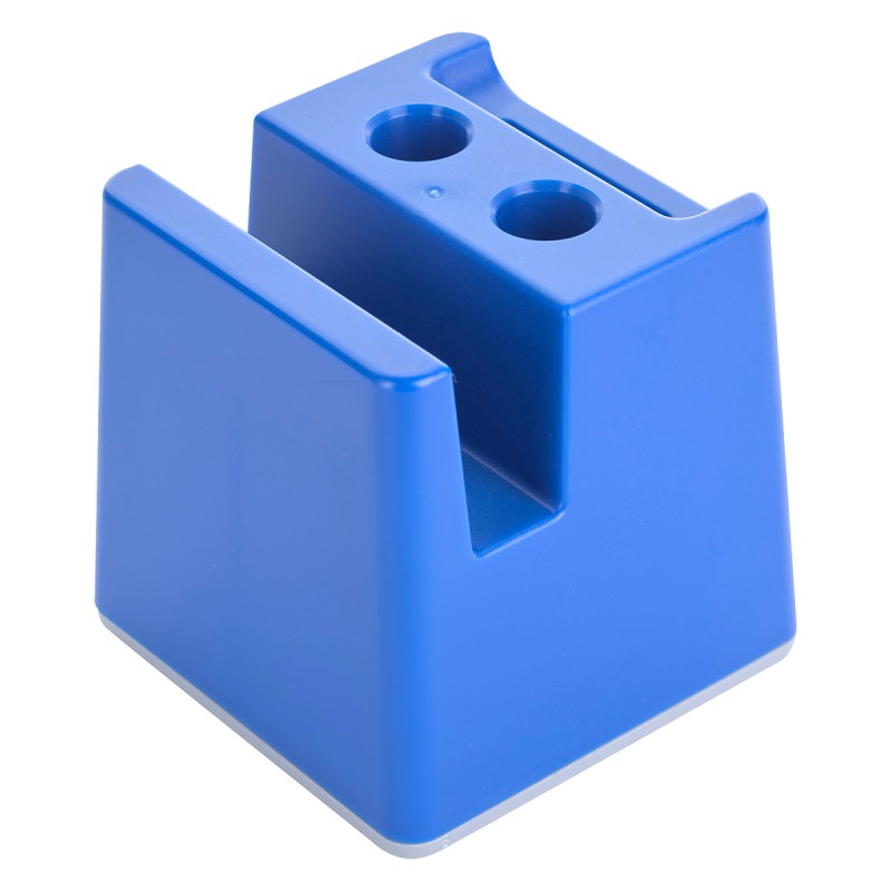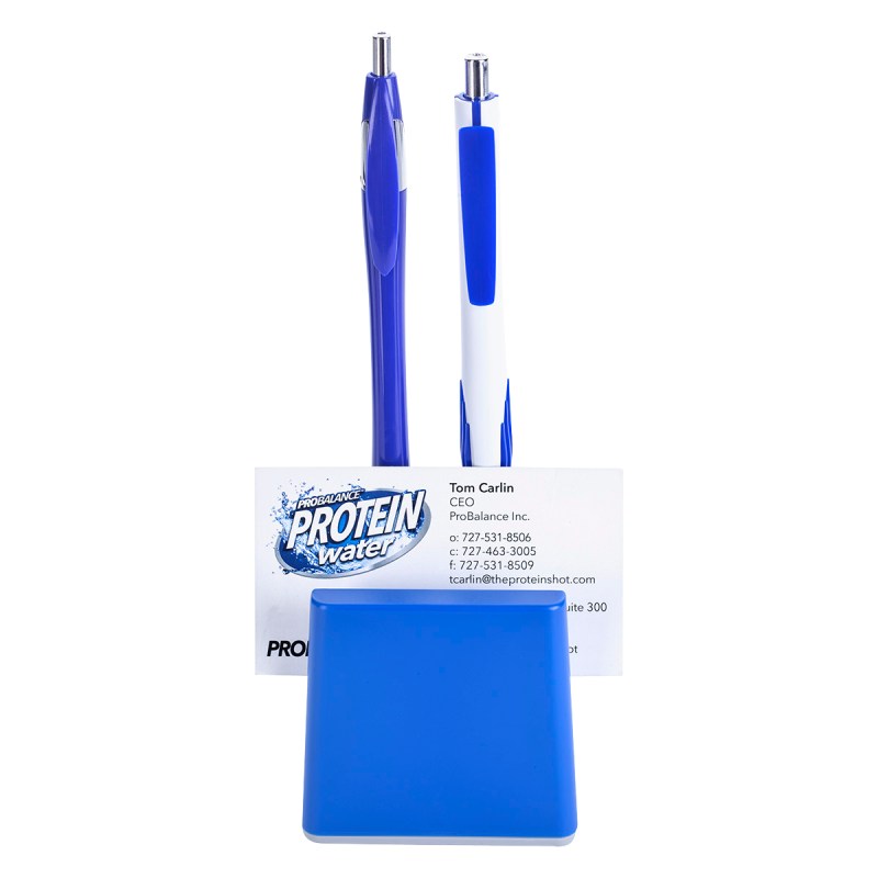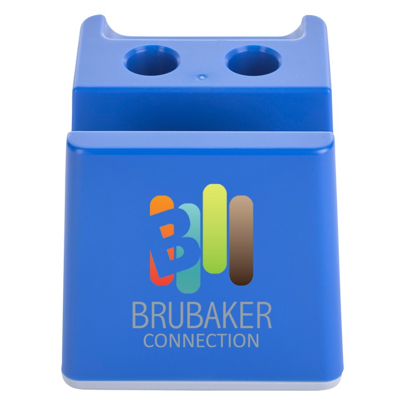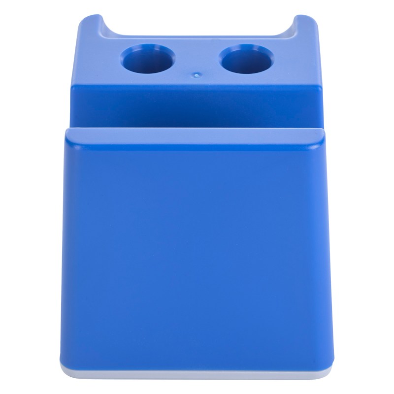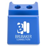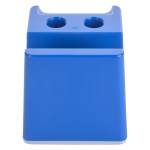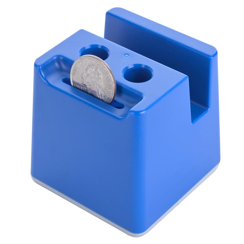 Slot For Business Cards Or Sticky Notes. Built-In Pen Holders. Removable Bottom Plug For Coin Retrieval. 2.625″ D x 2.625″ W x 2.625″ H