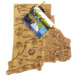 The Destination Series highlights the unique flavor and experiences of every state. The fun, laser-engraved artwork calls out the towns, places and attractions that make each place special. These versatile boards work well as a serving board, a cutting surface or hanging as wall decor with the included hang tie. The line includes every US state, the Hawaiian Islands, Mexico and several Canadian provinces. Boards can be further engraved on the back with a logo. Complies with Prop 65. 13 3/4″ W x 12 1/2″ H x 5/8″ D