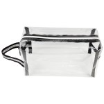 The Diamond Clear TPU Travel Bag is a clear pouch with a zippered main compartment that offers ease of use in organizing and carrying travel essentials and is a simple solution for clear bag safety protocols. Bag has a 7″ carry strap is a black woven braid with light gray accent. The PVC-free bag has a wipeable surface that makes cleaning easy. Complies with Prop 65. 8.5″ L x 4″ W x 4.5″ H