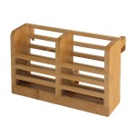 This bamboo Dish Rack Utensil Holder hooks onto the side of your dish rack to keep your flatware and utensils under control. Use with our regular or compact dish racks or for stand-alone drying. Complies with Prop 65. 7 7/8″ W x 3″ D x 5″ H