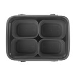 Introducing the versatile Four Compartment Snack Kit! This innovative container is not just for snacks – it can also be used as a bento box, fruit tray, spice organizer, or serving tray. The possibilities are endless! The locking lid and four removable containers make it easy to customize your storage needs. Plus, it’s freezer safe and BPA free for added peace of mind. The lid is proudly made in the USA, ensuring quality and durability. The large container holds approximately 46 oz, while the small containers hold approximately 5.5 oz each. Upgrade your food storage game with this multi-functional and stylish snack kit today! Complies with FDA, Prop 65. 7″ L x 5.25″ H x 3.25″ W