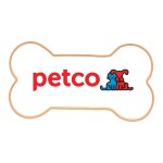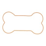 A handmade dog bone-shaped cookie with smooth royal icing and crisp, colorful edible print, baked fresh daily, individually wrapped, and made in the USA.