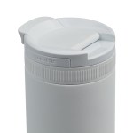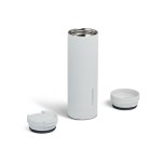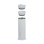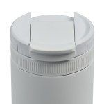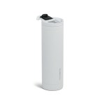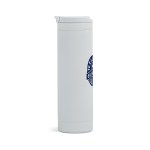 Designed for effortless sipping on the move, this vacuum-insulated tumbler keeps drinks icy cold or piping hot for hours. Crafted from 90 percent recycled stainless steel with a copper liner, it features a magnetized flip-top cap that stays open while you drink-no fumbling required. Internal measurement markings support hydration tracking, while the leakproof design, quiet non-slip base, and cupholder-friendly shape make it ideal for travel, work, or adventure. Complies with CPSIA, Prop 65. 3.25″ W x 9.75″ H x 3.25″ L