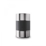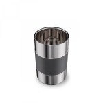 Keep the drinks cool with this classy stainless steel and vinyl trimmed bottle cooler. The inside is made of SS304 quality stainless steel, and the SS201 stainless steel outer layer is center-wrapped in deluxe Donald vinyl so that your bottle both stays cool and looks cool as it sits waiting for you. Default decoration is laser touch centered on the front. Comes in a black tuck-in box. 4.6875″ L x 7.5″ W x 4.6875″ H