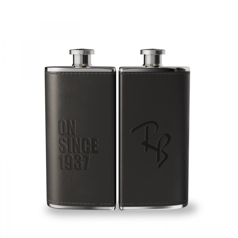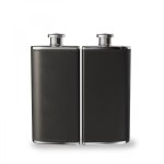 Cant decide what youre in the mood for? Opt for this dual flask to double the fun! This pair of 3 oz flasks is perfect for mixes, mine and yours, or a combination of your favorites. Made of SS304 quality stainless steel and wrapped in classic black Donald vinyl, these flasks easily tuck away in their convenient carry case designed to hold both securely in place. Comes in a black tuck-in box. 4.0625″ L x 4.5000″ W x 1.5000″ H