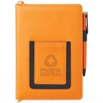 This perfect bound, non-refillable hard cover journal with 192 perforated, ivory lined pages and color-matching page edging, is the perfect organizer on the go. Use the date feature for daily journaling and meetings and mark your spot with the matching color ribbon bookmark. It’s all about keeping things secure and accessible, so tuck your phone into the universal phone holder, protect your credit card in the RFID protected card slot and use the elastic pen loop to hold the included color-matching Donald G1254 ballpoint pen. Journal inner page dimension is 5 1/2″ x 8 1/16″ ComponentsG1254′,’ST473. 6.125″ L x 8.25″ W