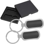 A Great Keychain Gift Set for any Occasion! Two Avner Keychains displayed in a gift box. Black cardboard gift box with fitted lid. Personalize both the keychains & the gift box. Complies with Prop 65. 4.75″ W x 4″ L x 0.75″ H