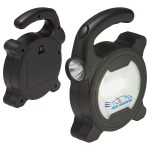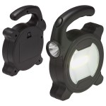 Dual Beam COB + LED Work Light features an ergonomic curved handle with both a super bright COB light panel on the side and LED torch on the front. Wide feet provide a stable base for hands-free use. Powered by 3 AA batteries, inserted. Complies with Prop 65. 3.75″ L x 1.125″ W x 5.25″ H