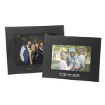 Dual Easel Photo Frame with sturdy pop-out dual easel frame for vertical or horizontal format, holds one 4″ x 6″ photo. Crafted of sturdy 20 pt. black weave recycled paper stock with a 1-color gold or silver foil hot-stamped imprint standard. Also available for a 5″ x 7″ photo and in white, see other styles. 6″ W x 8″ H