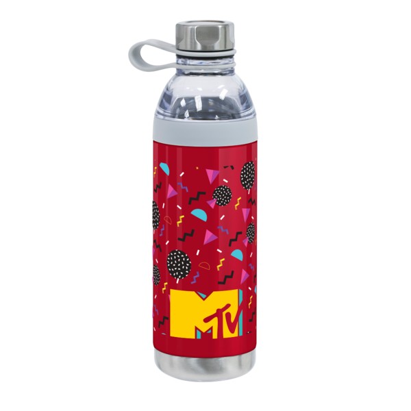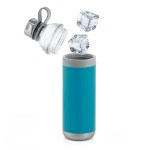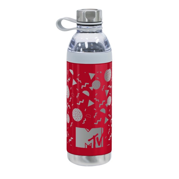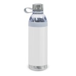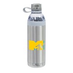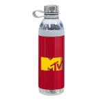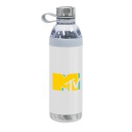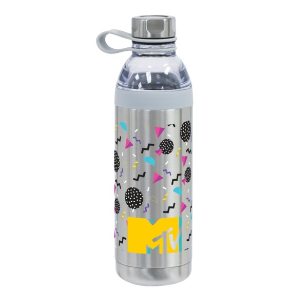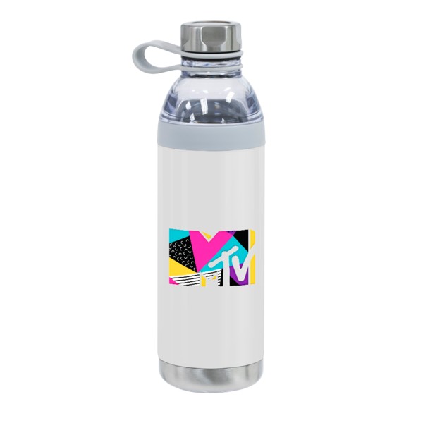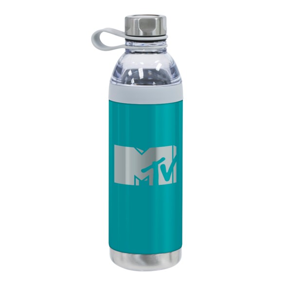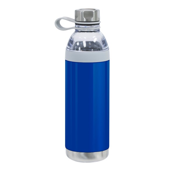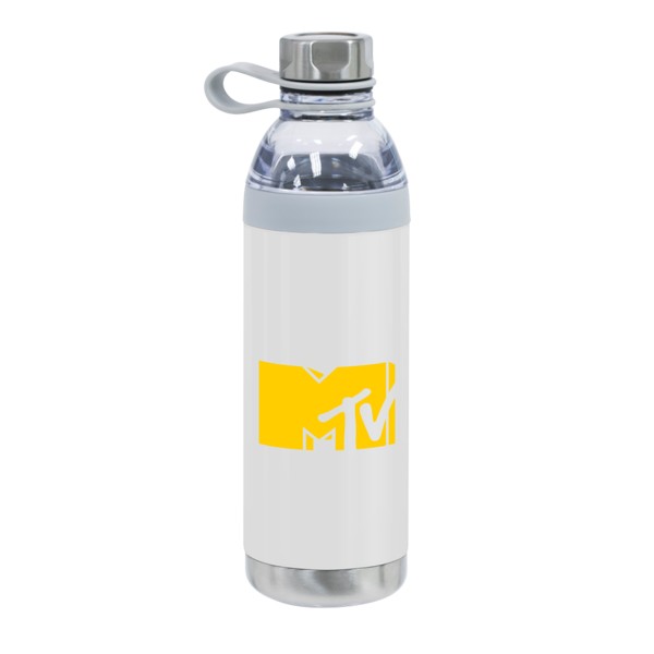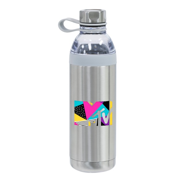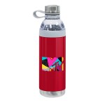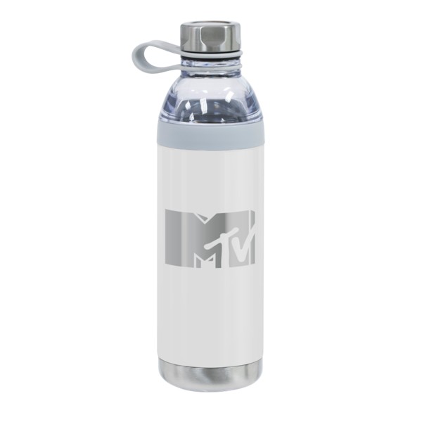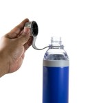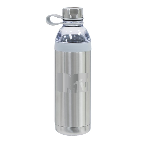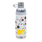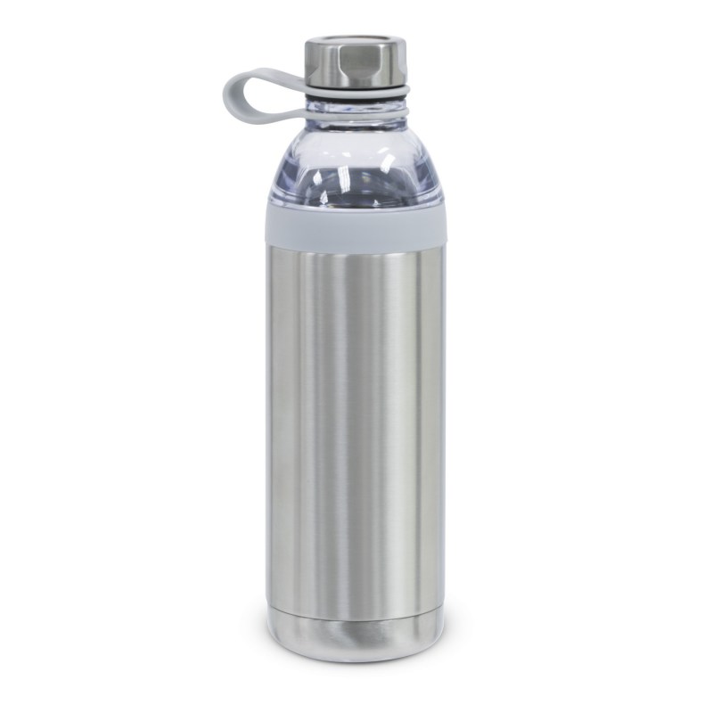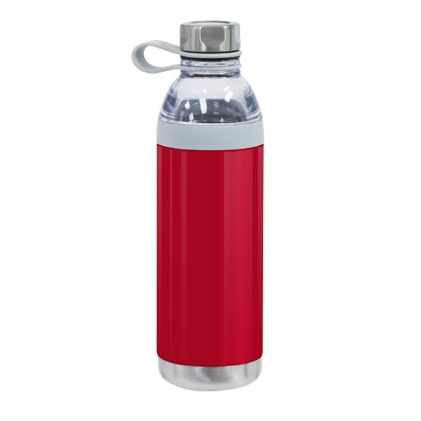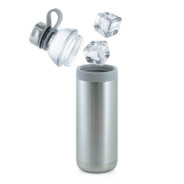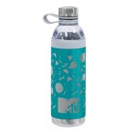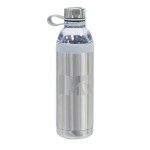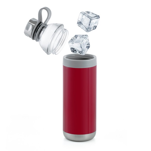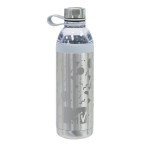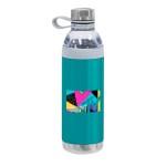 20 Oz. High gloss finish stainless steel body water bottle with AS plastic/stainless steel dual opening lid (for easy cleaning and adding ice cubes). Double wall insulated; copper lined; rubber carry handle. Not microwave safe; hand wash recommended. 10.1875″ H x 3″ W