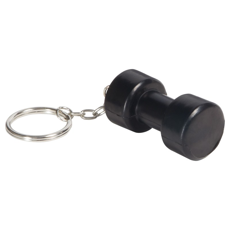 Dumbbell Shaped Polyurethane Stress Reliever Key Chain. Complies with ASTM, CCPSA, CPSIA, Prop 65. 1.875″ H x 1″ Diameter