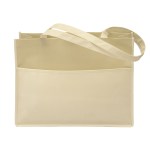 The 105-combined-GSM Dunes™ Matte-Laminated Tote provides a subtle canvas look with a large, semi-transparent non-woven front pocket. An optional plastic bottom insert is available for purchase. Handles measure 1″W x 18″ long. 16″ W x 6″ D x 12″ H