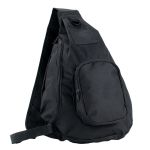 Classic sling bag- 600D polyester- Large zippered main compartment- Zippered front pocket and adjustable shoulder strap- Size: 13″ x 15.5″ x 4″. 13.0″ W x 15.5″ H x 4.0″ D