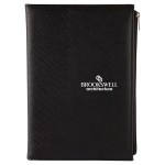 The Durham junior journal has 80 lined cream colored pages and features a stylish leatherette cover with a tile design around the spine. The front cover features a side loading zipper pocket to keep essentials safe. On the inside cover there are two slots for cards or other important papers. Journal book is replaceable. Complies with Prop 65. 6″ W x 8 5/8″ H x 1″ D