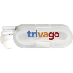 The sleek translucent case not only keeps your ear buds neatly organized, but also doubles as a convenient phone stand. Complete with color matching ear buds for a stylish and cohesive look. Complies with Prop 65. 2.625″ L x 1″ H