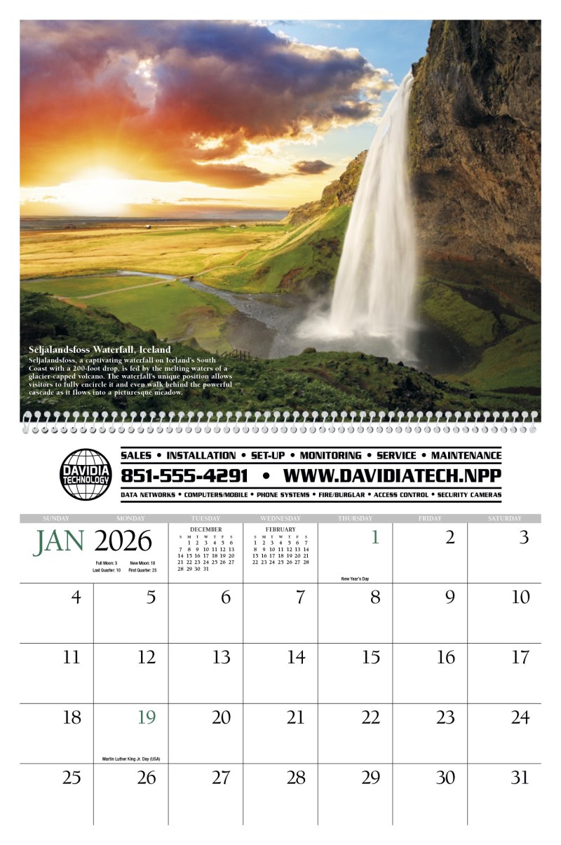 Let this calendar’s imagery of unique natural phenomena keep you intrigued all year long. The FSC® label means that the materials used for this product come from well-managed FSC®-certified forests and other controlled sources.
