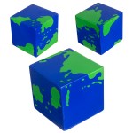 Earth Cube Shaped Polyurethane Stress Reliever. Complies with ASTM, CCPSA, CPSIA, Prop 65. 2.5″ L x 2.5″ W x 2.5″ H