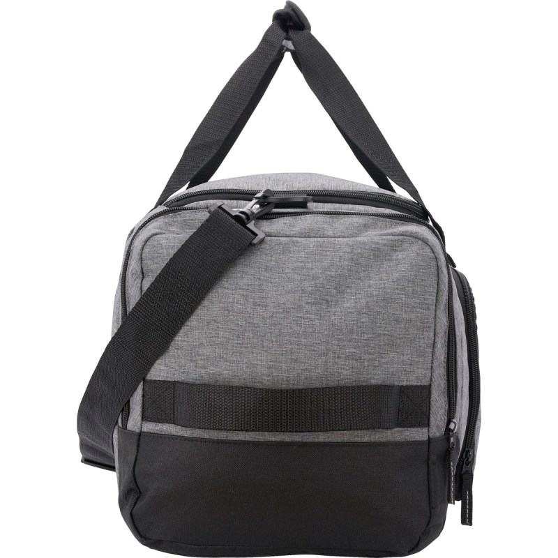 Part of the EarthTrendz™ collection which features eco-friendly, recycled materials. Constructed from eco-friendly 300D two-tone rPET Polyester, 600D rPET Polyester, and 210D rPET Polyester. Features include spacious main compartment, one front zipper pocket, a separate side shoe compartment, a side zipper pocket, easy zipper pulls, and one side handle. Adjustable removable shoulder strap. Hook and loop padded closure on handles. 10″ D x 18″ W x 11″ H