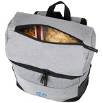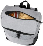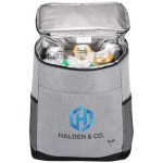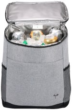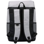 Adjustable air mesh padded shoulder straps and top carry handle Padded back panel with trolley strap Top compartment for dry products/snacks Bottom compartment holds up to 30 cans Dual side mesh pockets for added storage Front slash pocket with built-in bottle opener Constructed from rPET 300D two-tone and rPET600D polyester with PEVA liner and 5mm PE foam. 7″ D x 13″ W x 18″ H