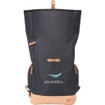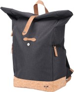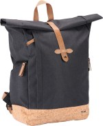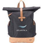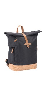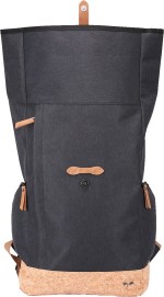 Front zippered pocket and two side zippered pockets Top carry handle for convenience Rolltop closure with magnetic strap Interior slash pocket for added organization Cork accent material Constructed of rPET 300D two-tone polyester, 600D rPET with cork accents, and rPET 210D lining Air mesh padded backing and adjustable shoulder straps. 6″ D x 11″ W x 18″ H