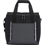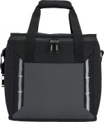 24 can main compartment capacity with zippered wide opening top Padded hook and loop secured handles Constructed from eco-friendly 600D/PU rPET Polyester, 210D/PU Polyester, 8mm PE foam, and 18C PEVA lining Features front slash pocket, front daisy chains with reflective accents, and an attached Stainless Steel bottle opener Leak-resistant heat-sealed liner Part of the EarthTrendz collection which features eco-friendly, recycled materials Adjustable padded shoulder strap. 9″ D x 12″ W x 12″ H