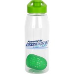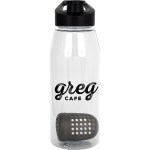 Introducing our 32 oz. reusable water bottle, designed to keep you hydrated and refreshed throughout the day. With a convenient infuser that can hold 28-30oz of your favorite fruits, you can enjoy delicious flavored water on the go. The easy pour lid with a handle makes it effortless to stay hydrated wherever you are. Made from BPA-free materials, this bottle is safe for everyday use. However, please note that it is not recommended for use in the dishwasher or microwave. Stay hydrated in style with our versatile and eco-friendly water bottle. Complies with Prop 65. 3.25″ D x 9.75″ H