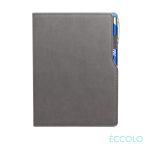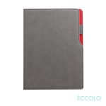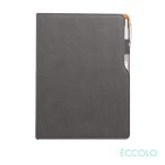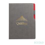 More than a contemporary take on the classic pen port journal…this is an indispensable tool for organizing big thoughts and bright ideas. The Mambo features…- Unique two-tone design with pen holder on the side- leatherette stitched cover- 192 white lined pages- Acid-free 80-gram paper- Lay-flat binding- Side pen port- Bookmark ribbon- Cool gray end pages. *Belly Band & Promo Page Inserts Optional. See Decorating Info for details. 6.0″ W x 8.25″ H