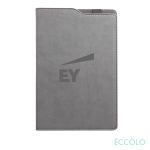 A modern twist on the classic thinker’s journal. A reliable travel companion, sure to inspire writings, thoughts and plans for the future.The Soca Journal Features…- Unique two-tone design with pen holder on the top- Stiched Leatherette cover- 192 white, lined pages- Acid-free 80 gram paper- Lay-flat binding- Bookmark ribbon- Top pen port- Cool gray endpages, *Belly Band & Promo Page Inserts Optional. See Decorating Info for details. 5.75″ W x 8.625″ H