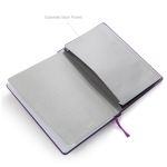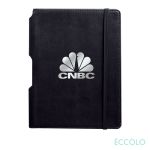 Quickly becoming one of our most popular designs with a pen holder in the spine, Tempo journals are sure to be the new favorite at meetings and on the desktop. Includes a 12-month undated calendar at the back. The Tempo Journal Features…- Smooth leatherette stitched cover- 12 Month undated calendar- Exclusive pen holder in spine- Elastic band closure (color matched)- 192 perforated white lined pages- Acid-free 80-gram paper- Lay-flat binding- Cool gray endpages- Gusseted back pocket- Bookmark ribbon (color -matched).*Belly Band & Promo Page Inserts Optional. See Decorating Info for details. 5.75″ W x 8.25″ H