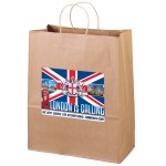 The Eco Citation is made from brown kraft paper and has twisted paper handles and a serrated top. The eco-friendly bag is made from 100% recycled paper with a minimum of 60% recycled post-consumer content. 13″ W x 6″ D x 15″ H