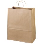 The Eco Citation is made from brown kraft paper and has twisted paper handles and a serrated top. The eco-friendly bag is made from 100% recycled paper with a minimum of 60% recycled post-consumer content. 13″ W x 6″ D x 15″ H