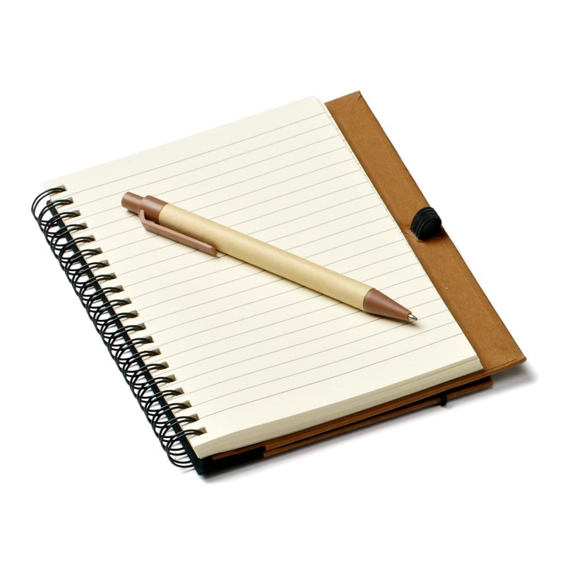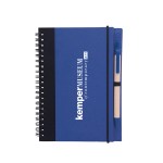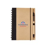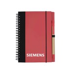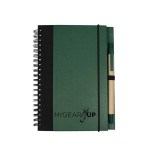This eco hardcover journal could do wonders for your brand! It comes with a matching pen and sheets of 100% recycled, lined paper (not refillable). This features a metal spiral which is 80% recycled, and black fabric accents made from 80% post-consumer recycled materials. This is great for students, professionals, or anyone else who needs to take down notes. Add your company name or logo and show that you care about your customers and the environment! Complies with Prop 65. 5″ W x 7″ H