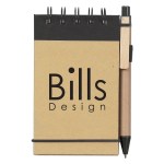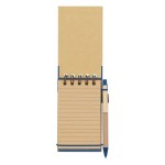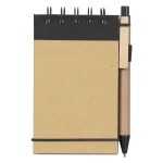 65 Page Lined Notebook. Elastic Band Closure. Matching Pen With Paper Barrel In Elastic Pen Loop. Cardboard Cover. Complies with Prop 65. 3″ W x 5″ H