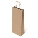 The Eco Vino is made from brown kraft paper and has twisted paper handles and a serrated top. The eco-friendly bag is made from 100% recycled paper with a minimum of 60% recycled post-consumer content. 5 1/2″ W x 3 1/2″ D x 13″ H