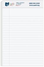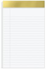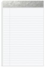 This legal pad features a chipboard back and 18 Lb. white tablet bond sheets with a standard gray ruling pattern on the front and back of each sheet. 5″ W x 8″ H