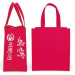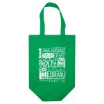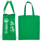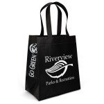 The 80 GSM non-woven Economy Tote offers a larger imprint area than standard grocery bags, along with heat-sealed handles, and fused seams. An optional plastic bottom insert is available for purchase. Stock imprinting on the side gussets includes messaging to promote reuse of the bag. Handles measure 1″W x 20″ long. 13″ W x 8″ D x 15″ H