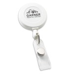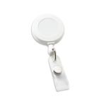 Deluxe Round Retractable Badge Holder with slide-on clip on back and 30 long retractable nylon cord. 1 1/4 x 3 1/4 x 5/8. 1.25″ W x 3.25″ H x 0.625″ D