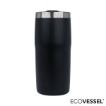 The EcoVessel Metro Vacuum Insulated Tumbler is made of 18/8 food-grade stainless steel and features extra insulation with copper lining that will keep your drinks cold for 24 hours and hot up to 6 hours. This tumbler has a modern and ergonomic shape for a comfortable grip and is easy for traveling as it fits in most standard car cup holders. It features distinctive styling, a multi-position push-in slider lid and a silicone base ring that provides a quiet and soft landing when setting it down. Enjoy the Metro tumbler on-the-go with your favorite coffee, tea or smoothies as its FDA complaint and BPA free. Through their partnership with 1% for the Planet, EcoVessel donates a minimum of 1% of all sales to various environmental nonprofits. Complies with Prop 65. 3 1/4″ W x 6 15/16″ H x 3 1/8″ D